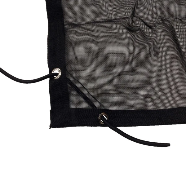 Fine-mesh tarpaulin for use over single-axle or tandem-axle trailers. Especially suitable for transporting sand and small garden waste.
