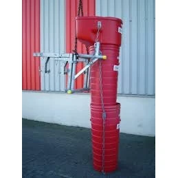 Chutes in the form of a blunt cone made of plastic or galvanized steel, with connections via chains, hooks, and eyes.
