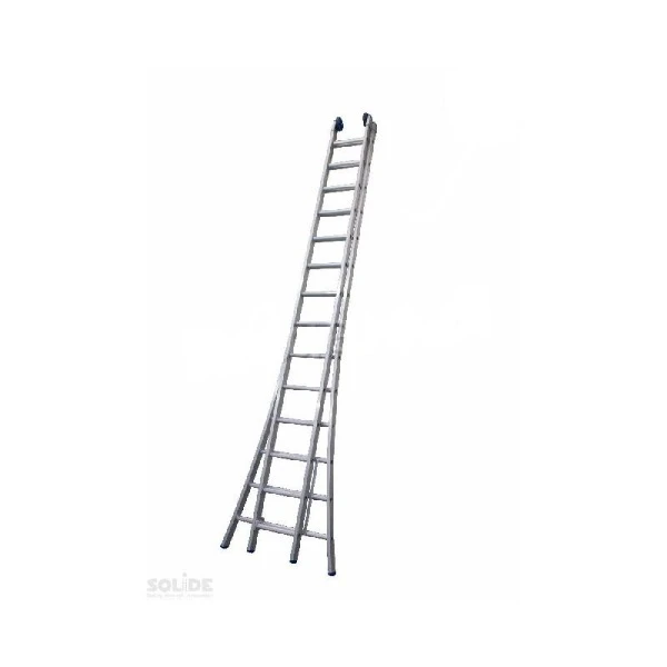 Aluminum ladder consisting of 2 sections, each with 14 rungs. When collapsed, it is 3.75 meters long, and when extended, it can be used up to a maximum of 6.50 meters.