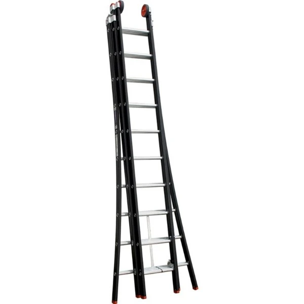 Ladder consisting of 3 sections, each with 12 rungs. The collapsed length of the ladder is 362 cm, and when extended, it can reach a maximum of 805 cm. Weight is 32.5 kg.