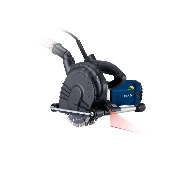 Groove cutter-sawing machine with 3 diamond blades for creating straight grooves in concrete and other hard materials. The groove has a maximum depth of 5 cm and a width of 5 cm. The groove cutter can only be used dry, so a fine dust extractor must always be attached to the groove cutter. This fine dust extractor is also available for rent from us.