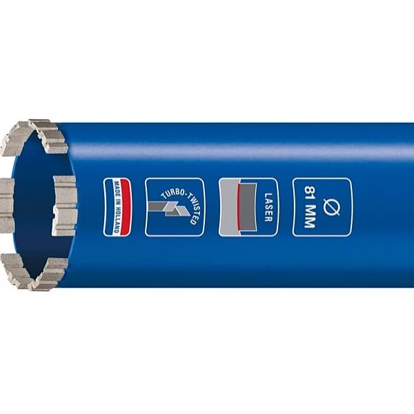Diamantboor doorsnede 111 mm met een lengte van 400 mm. De diamantboor wordt zonder diamantboormachine geleverd en deze moet dus nog eventueel apart gereserveerd worden. Verder mag de diamantboor alleen met waterkoeling gebruikt worden voor boren in beton en andere harde (natuur)steensoorten en de aansluiting van de diamantboor is 1/2 inch.