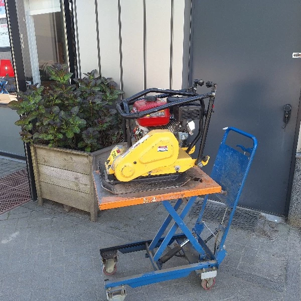Kleine trilplaat op benzine (E5/Euro 98 ongelood) met een gewicht van ongeveer 75 kilo en de voet is 40x35 cm. Het huurtarief is exclusief brandstofkosten en de trilplaat wordt met een volle tank meegegeven en achteraf wordt het verbruik bepaald en berekend.