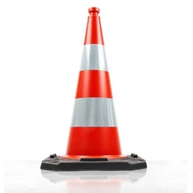 Reflecterende verkeerskegel/pion met een verzwaarde voet en een hoogte van 75 cm.